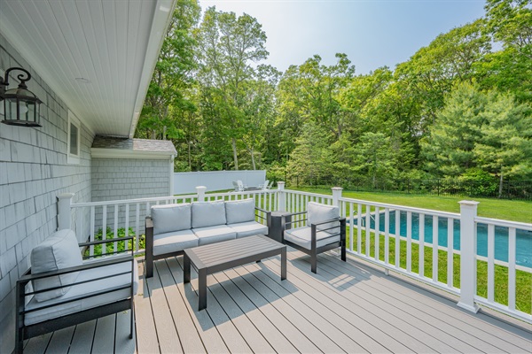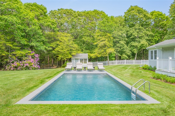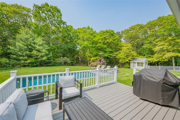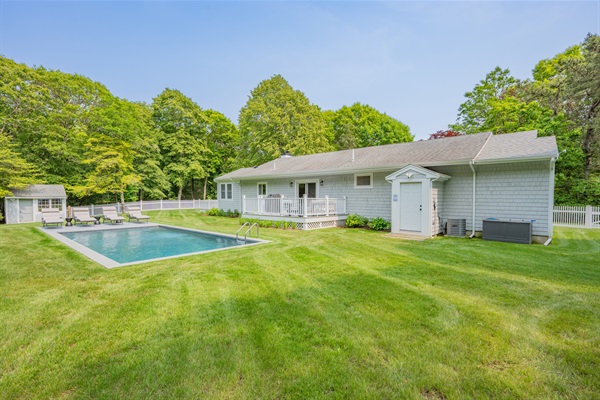 Chill out and dine by the pool! Extra propane is stored in the shed